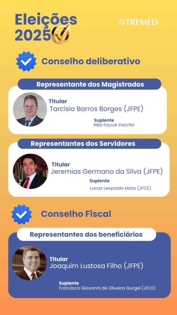 Após o encerramento da votação, que aconteceu entre os dias 8 e 9 de abril de 2025, por meio da plataforma online, a Diretoria de Gestão de Pessoas do TRF5 anunciou o resultado das eleições 2025 para o Conselho Deliberativo e Fiscal do TRFMED.