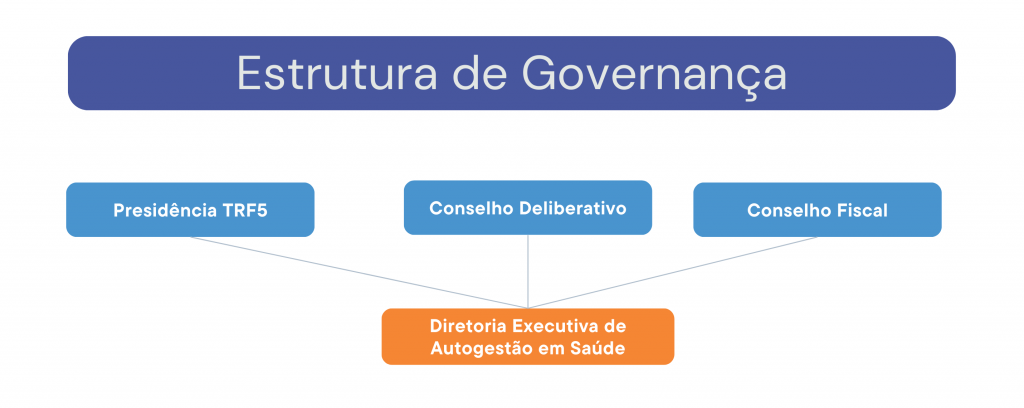 A Estrutura de Governança do TRFMED é composta pelos Conselhos Deliberativo e Fiscal, e a gestão é realizada pela Diretoria Executiva de Autogestão em Saúde, unidade administrativa vinculada à Presidência do TRF5.